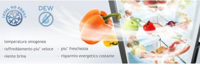 Nei frigoriferi no frost il freddo viene fatto circolare in modo uniforme da un sistema di ventilazione in una serie di passaggi obbligati, in modo da consentire agli alimenti una maggiore e migliore conservazione. In questa gamma di frigoriferi non trovere piรน brina o ghiaccio nel loro interno, quindi non sarร piรน necessario sbrinare il freezer.