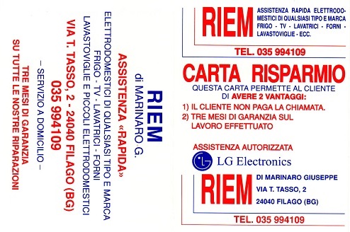 RIEM Elettrodomestici offre solo ai clienti in possesso della CARTA RISPARIMIOย la possibilitร di ottenere USCITA + PREVENTIVO GRATUITI per il controllo e la …